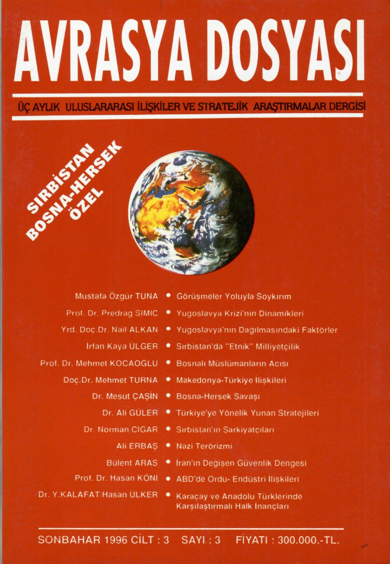 • AVRASYA DOSYASI SIRBİSTAN BOSNA*HERSEK ÖZEL CİLT; 3 SAYI; 3