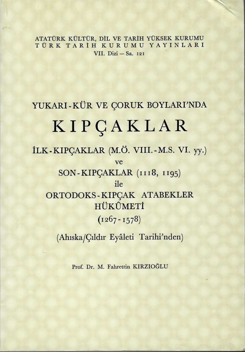 YURARI-KÜR VE ÇORUK BOYLARI'NDA KIPÇAKLAR ,İLK-KIPÇAKLAR (M.Ö.VIII.-M.S. VI. yy.) ve SON - KIPÇAKLAR (1118 , 1195) ile ORTODOKS - KIPÇAK ATABEKLER HÜKÜMETİ (1267 - 1578) (Ahıska / Çıldır Eyaleti Tarihi'nden) /