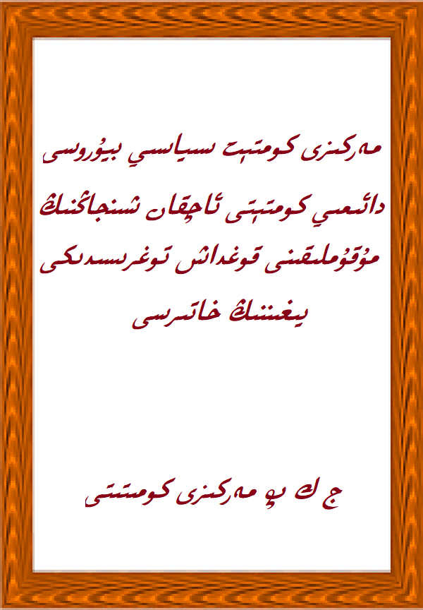 • مەركىزى كومتېت سىياسىي بيۇروسى دائىمىي كومتېتى ئاچقان شىنجاڭنىڭ مۇقۇملىقىنى قوغداش توغرىسىدىكى يىغىننىڭ خاتىرسى