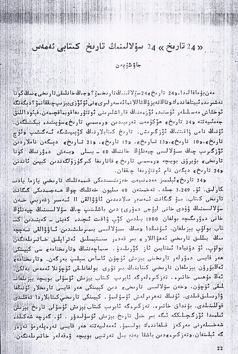 «24 تارىخ» 24 سۇلالىنىڭ تارىخ كىتابى ئەمەس