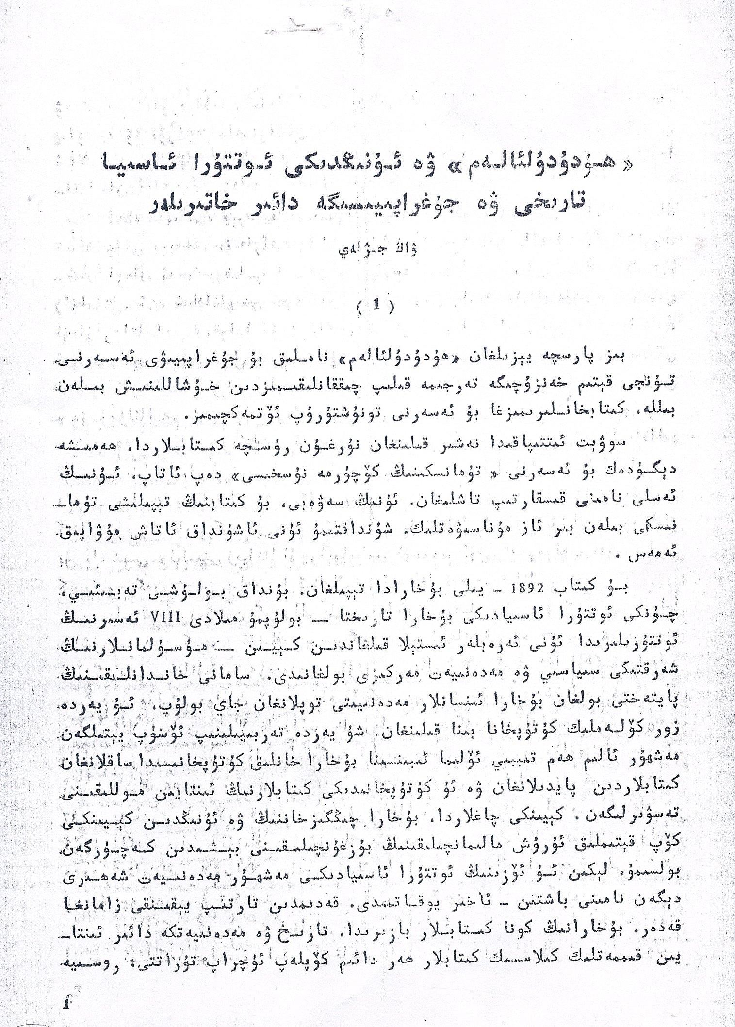 «ھۇدۇدۇلئالەم» ۋە ئۇنىڭدىكى ئوتتۇرا ئاسىيا تارىخى ۋە جۇغراپىيىسىگە دائىر خاتىرىلەر