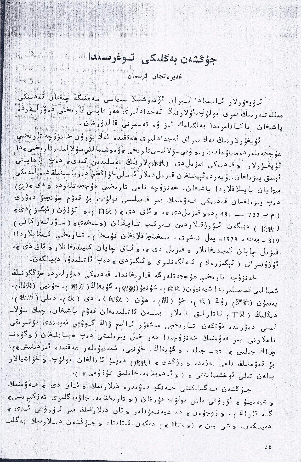 مەزكۇر ماقالىنىڭ ۇكاۋىسى كۆپەيتىلمىگەنلىكى ئۈچۈن ماقالىنىڭ قايسى يىلى ۋە قايسى ژۇرنالدا ئېلان قىلىنغانلىقى توغرىسىدا مەلۇمات بىرىلمىدى.