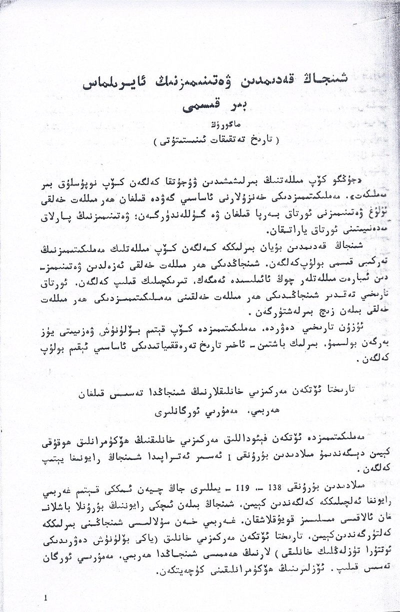 مەزكۇر ماقالە «شىنجاڭ ئىجتىمائىي پەنلەر تەتقىقاتى» ئىچكى ژۇرنالدا ئېلان قىلىنغان بولىشى مۇمكىن. باش بەت كۆپەيتىلمىگەنلىكى ئۈچۈن قايسى ساندا ئېلان قىلىنغانلىقى توغرىسىدىكى مەلۇمات بىرىلمىدى.