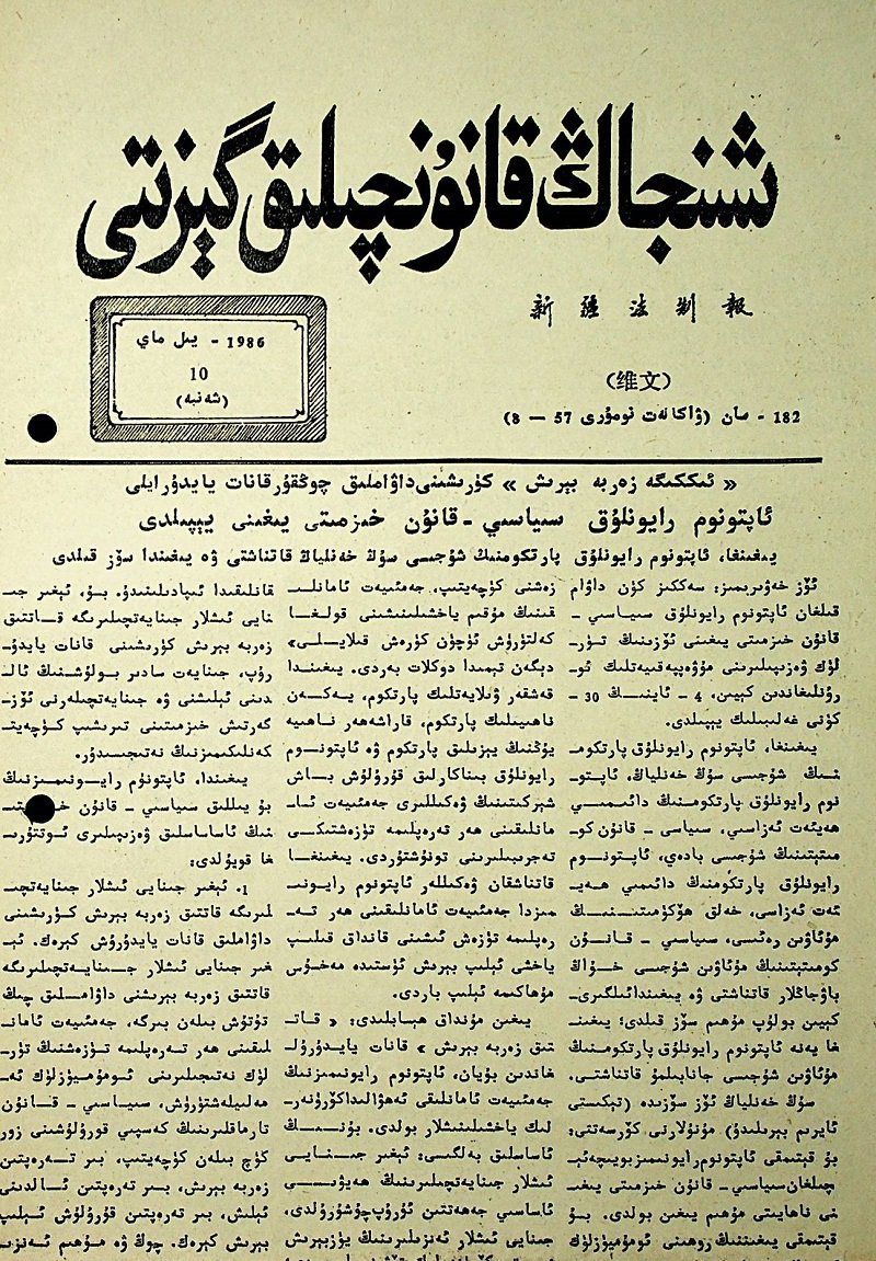 شىنجاڭ قانۇنچىلىق گېزىتى 1986- يىلى ماي