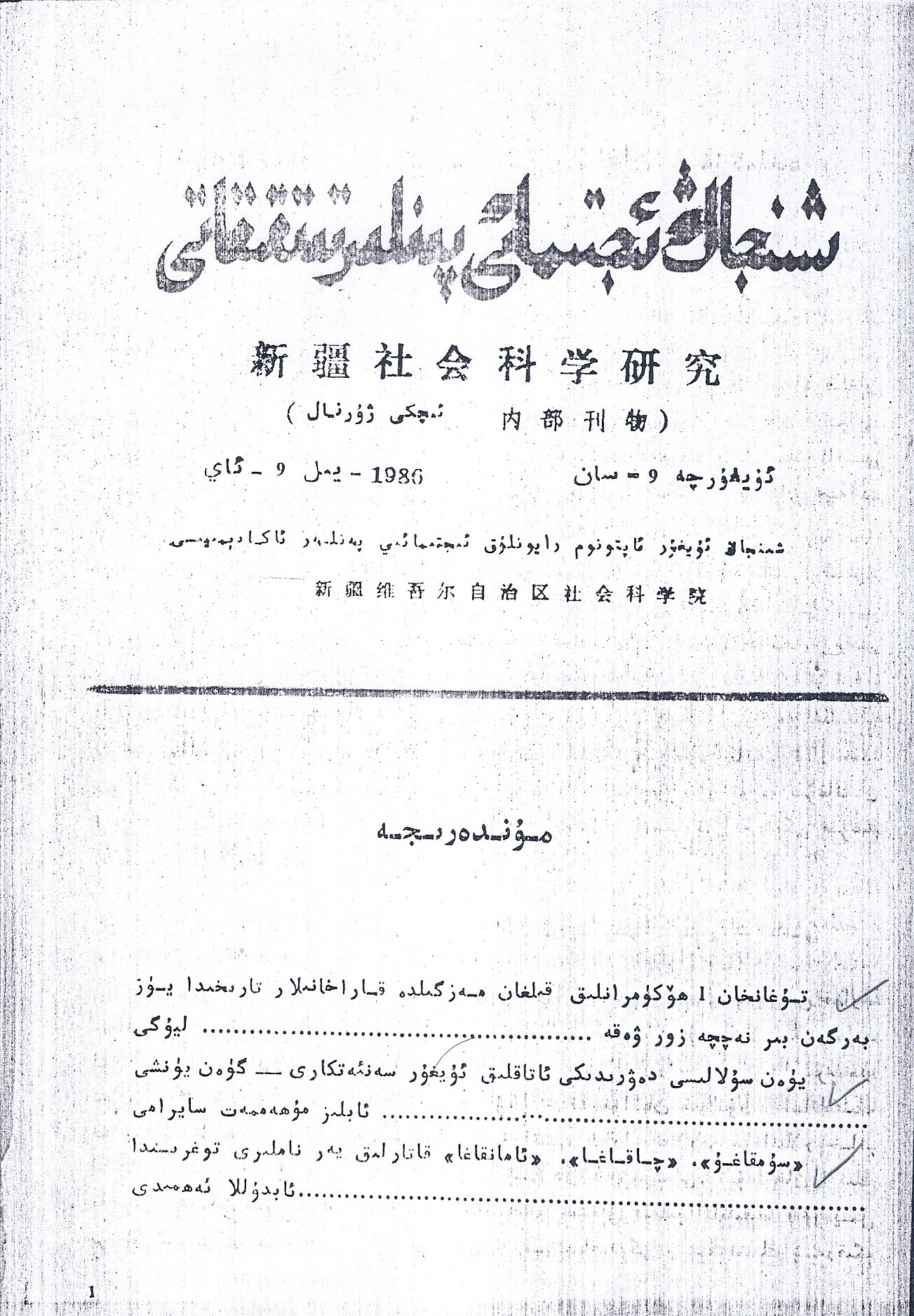 «شىنجاڭ ئىجتىمائىي پەنلەر تەتقىقاتى» ژونىلى، 1986- يىل 9- ساندا ئېلان قىلىندى.