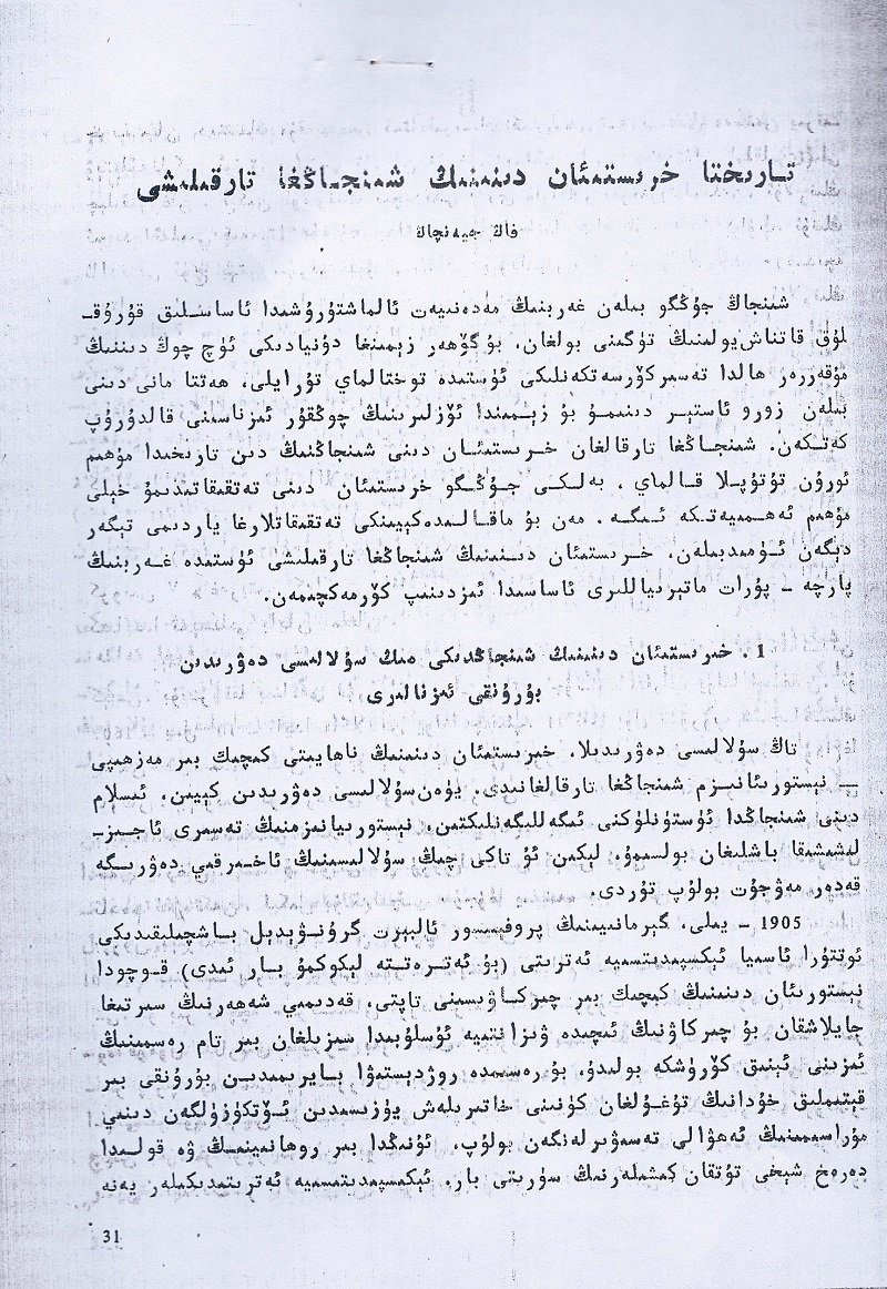 تارىختا خىرىستىئان دىنىنىڭ شىنجاڭغا تارقىلىشى