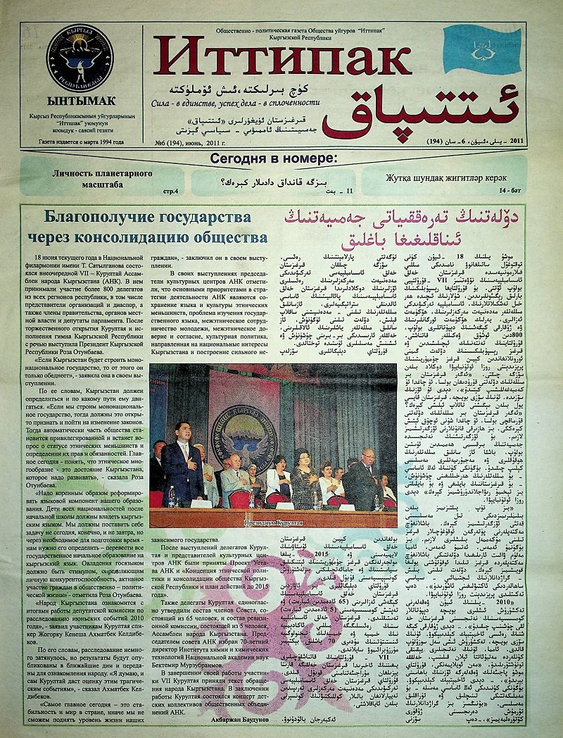 1994- يىلى مارتتىن باشلاپ نەشىر قىلىنغان، قىرغىزىستان ئۇيغۇرلىرى «ئىتتىپاق» جەمئىيىتىنىڭ ئاممىۋى- سىياسى گېزىتى. ھەر ئاينىڭ بار سانلىرى ئايرىم pdf قىلىندى.