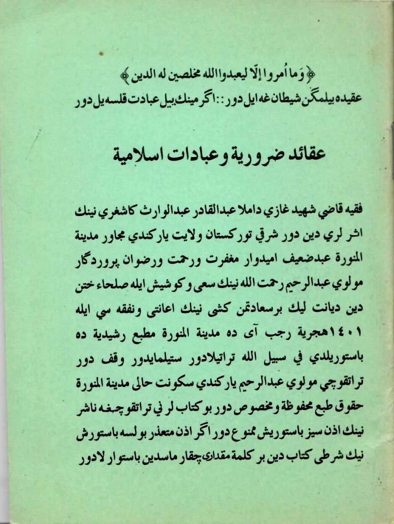 مەۋلەۋى ئابدۇرەھىم ياركەندى مەدىنە مۇنەۋۋەرە رەشىد مەتبەخانىسىدا بېسىپ تارقاتتى.