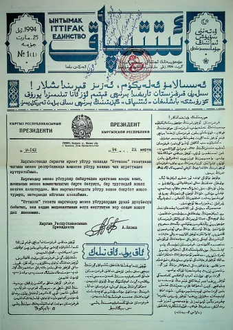 1994- يىلى مارتتىن باشلاپ نەشىر قىلىنغان، قىرغىزىستان ئۇيغۇرلىرى «ئىتتىپاق» جەمئىيىتىنىڭ ئاممىۋى- سىياسى گېزىتى. ھەر ئاينىڭ بار سانلىرى ئايرىم pdf قىلىندى.