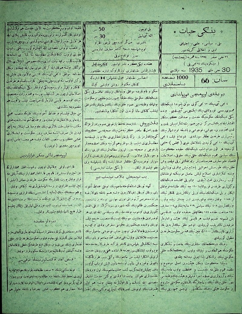 يېڭى ھايات 1935 (شەرقى تۈركىستان ھاياتى.)