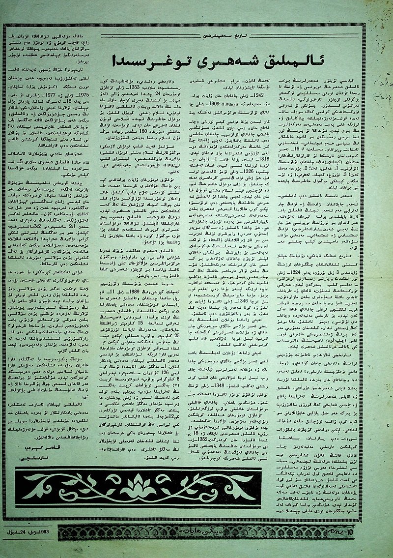 مەزكۇر ماقالە قازاقىستان جۇمھۇرىيىتىدە نەشىر قىلنغان «يېڭى ھايات» گېزىتىدە ئېلان قىلىنغان.