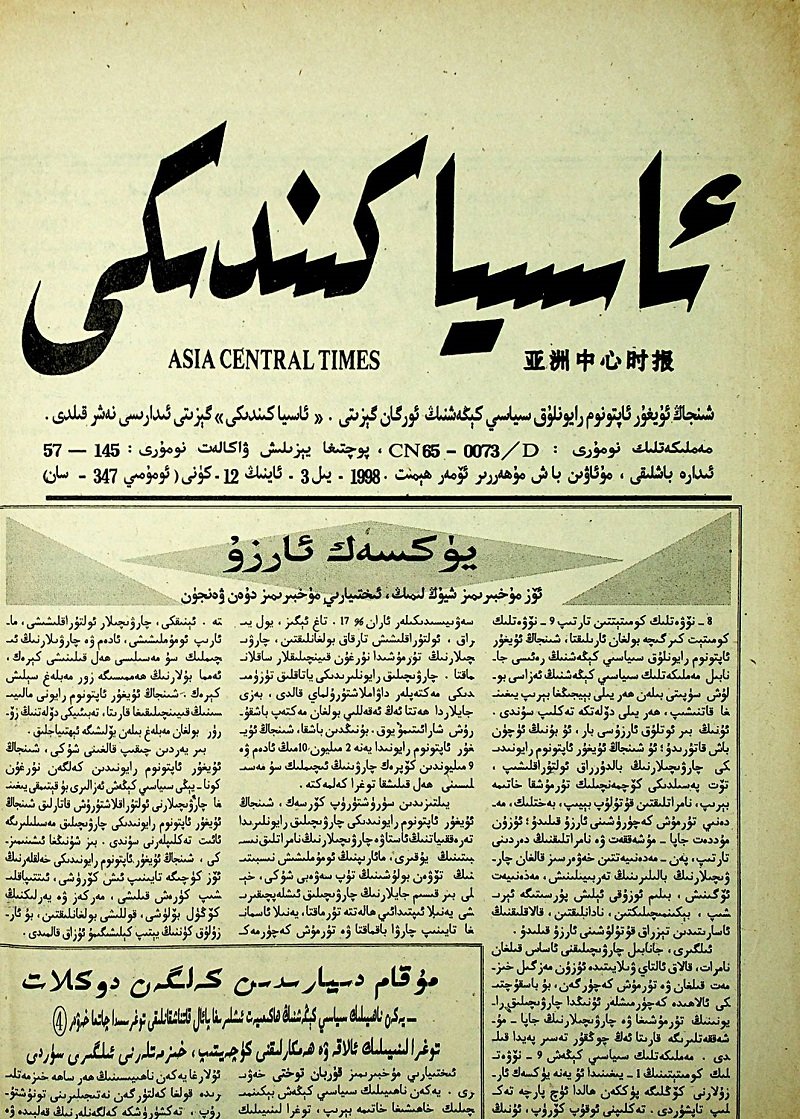 «ئاسىيا كىندىكى» گېزىتى ئىدارىسى نەشىر قىلدى.