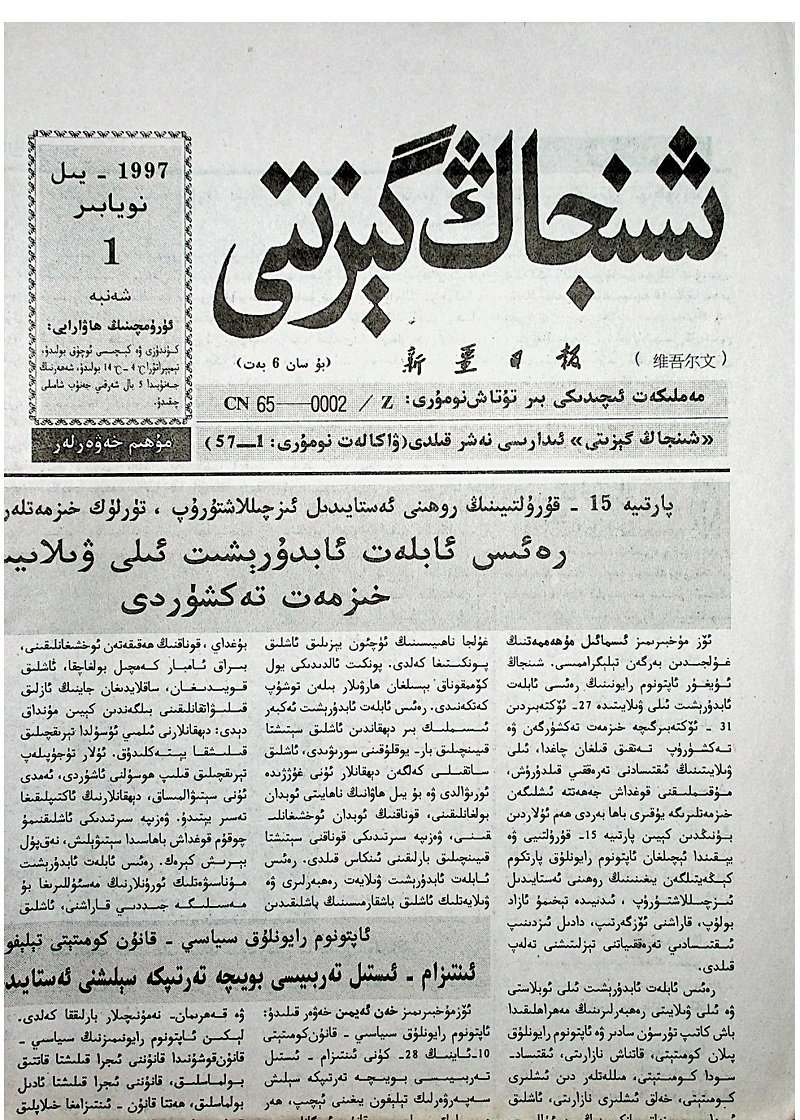 شىنجاڭ گېزىتى 1997- يىلى، نويابىر