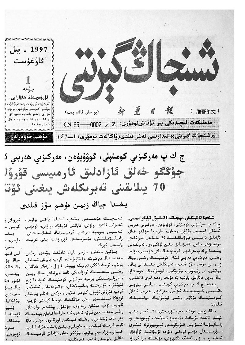 شىنجاڭ گېزىتى 1997- يىلى، ئاۋغۇست