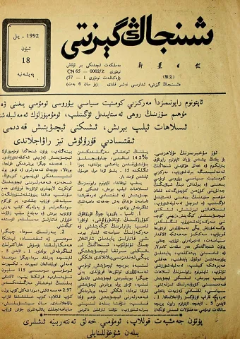 • شىنجاڭ گېزىتى 1992- يىلى، ئىيۇن