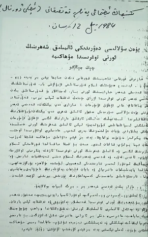 شىنجاڭ ئىجتىمائىي پەنلەر تەتقىقاتى «ئىچكى ژۇرنال» 1984-يىلى 12- ساندا نەشىر قىلىندى.
