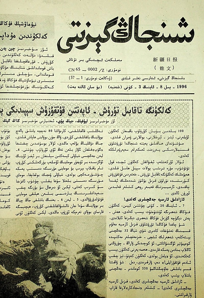 شىنجاڭ گېزىتى 1996- يىلى، ئاۋغۇست