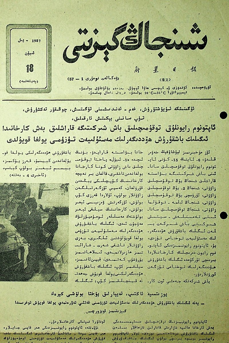 شىنجاڭ گېزىتى 1987- يىلى، ئىيون