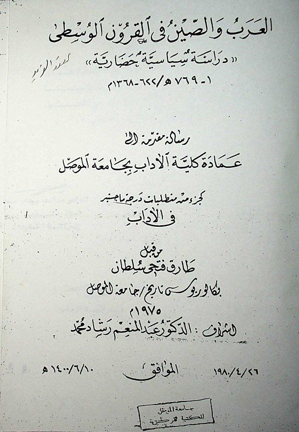 • العرب والصين في القرون الوسطى (دراسة سياسية حضارية)