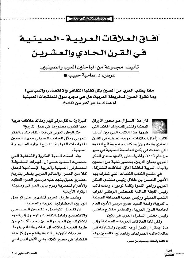 آفاق العلاقات العربية - الصينية في القرن الحادي والعشرين