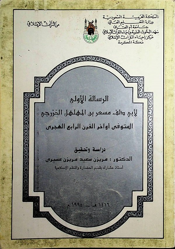 الرسالة الأولى لأبي دلف مسعر بن المهلهل الخزرجي المتوفى أواخر القرن الرابع الهجرى
