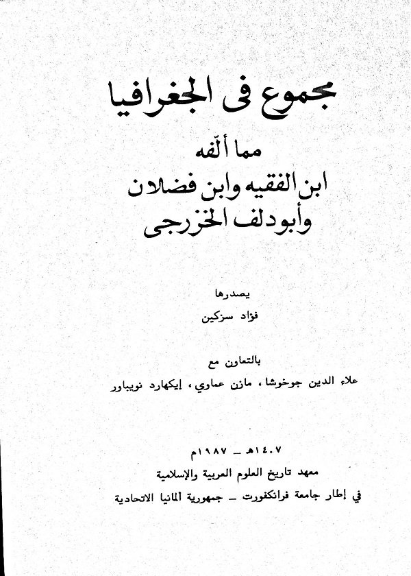 مجموع فى الجغرافيا مما ألفه ابن الفقيه وابن فضلان وأبودلف الخزرجى