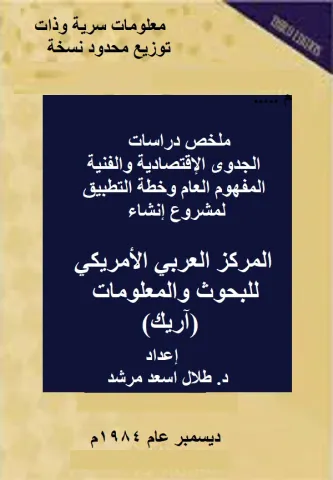 الجدوى الإقتصادية والفنية ، المفهوم العام وخطة التطبيق لمشروع إنشاء المركز العربي الأمريكي للبحوث والمعلومات (آريك)