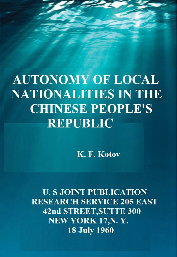 AUTONOMY OF LOCAL NATIONALITIES IN THE CHINESE PEOPLE'S REPUBLIC