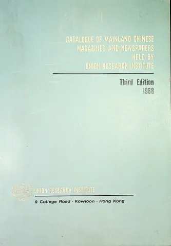 Catalogue of Mainland Chinese Magazines and Newspapers Held by Union Research Institute