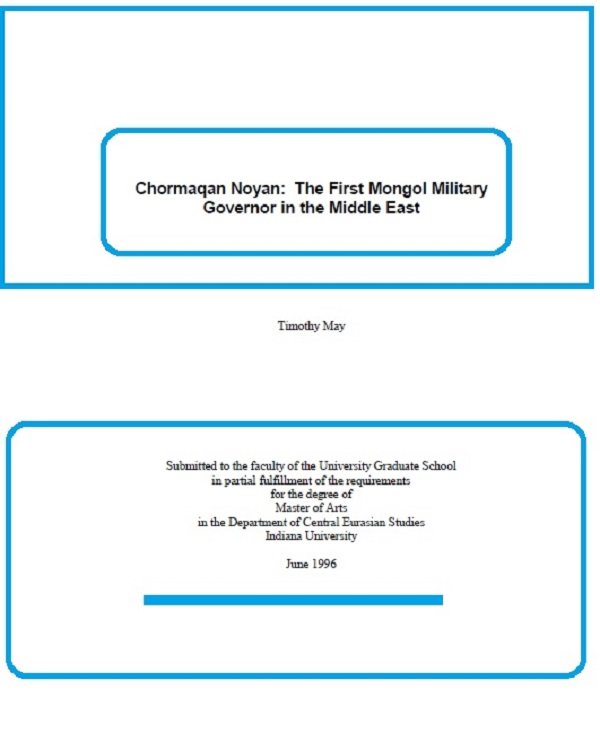 | Chormaqan Noyan: The First Mongol Military Governor in the Middle East (835.06 KB) | 835.06 KB |