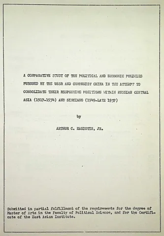 A COMPARATIVE STUDY OF THE POLITICAL AND ECONOMIC POLICIES... AND COMMUNIST CHINA ...THEIR RESPECTIVE POSITIONS WITHIN RUSSIAN CENTRAL ASIA (1917-1934) AND SINKIANG (1949-LATE 1957)