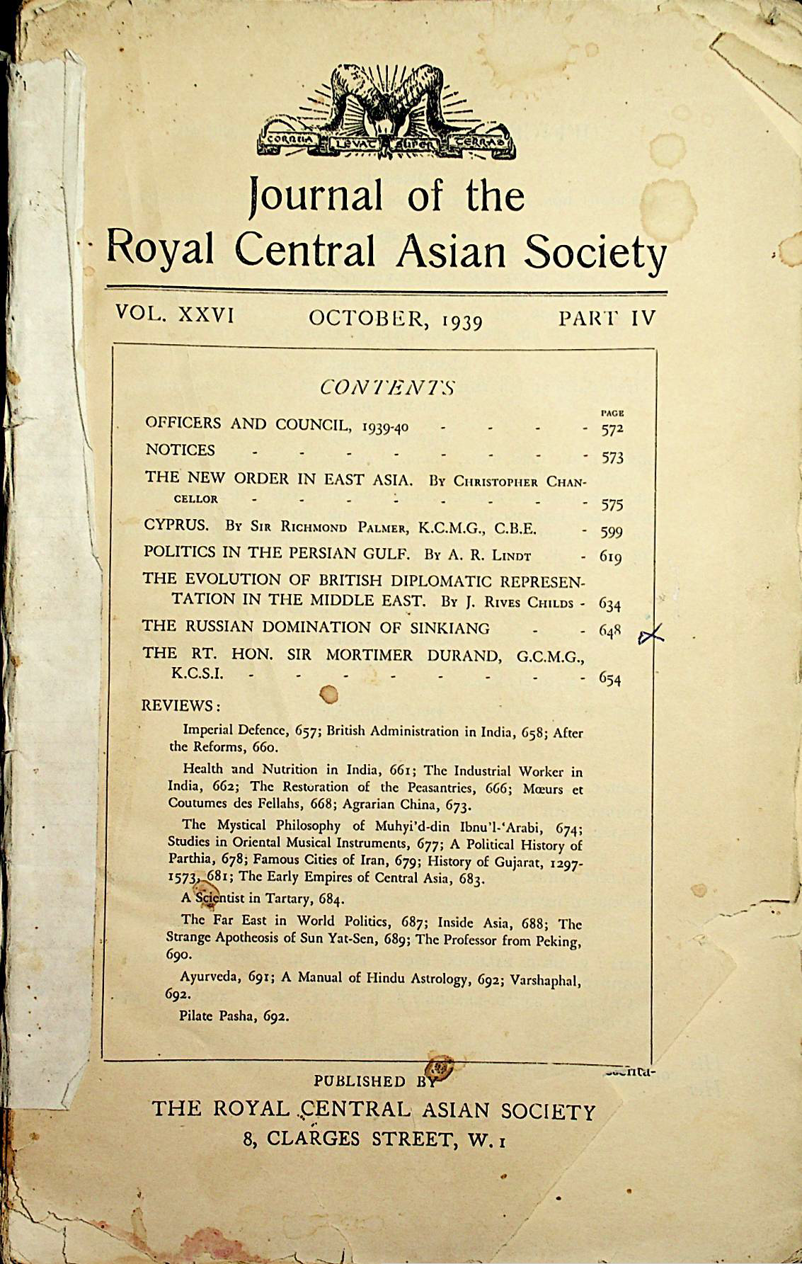 Journal of the Royal Central Asian Society 1939