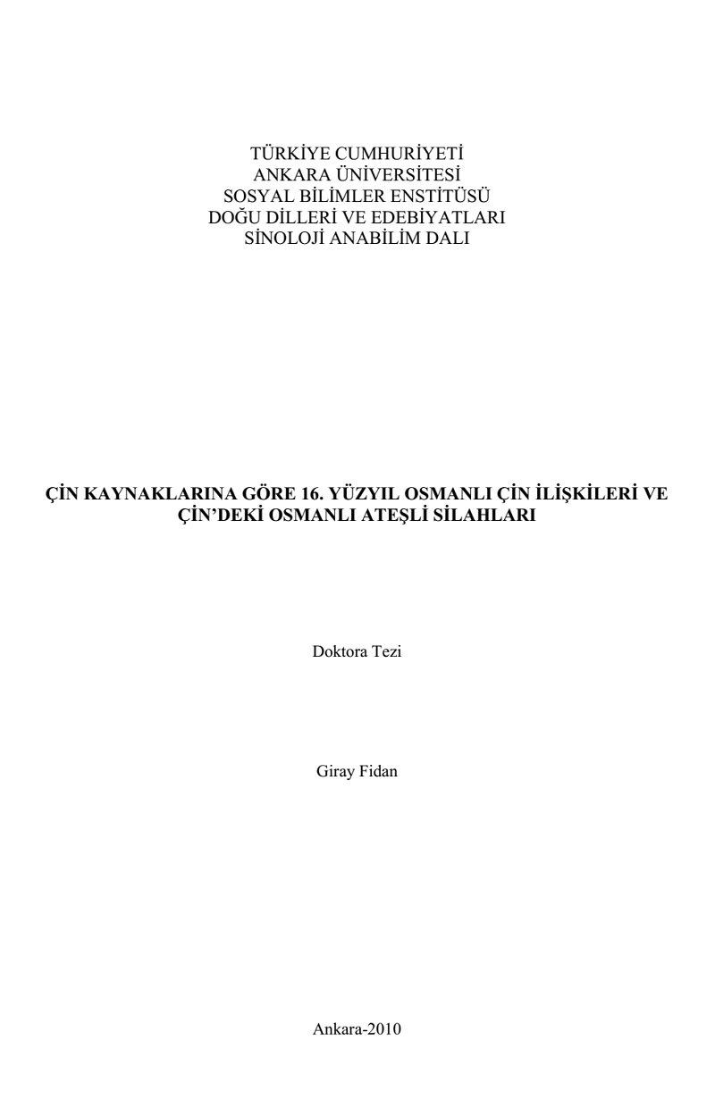 ÇİN KAYNAKLARINA GÖRE 16. YÜZYIL OSMANLI ÇİN İLİŞKİLERİ VE ÇİN’DEKİ OSMANLI ATEŞLİ SİLAHLARI (10.46 MB) 10.46 MB