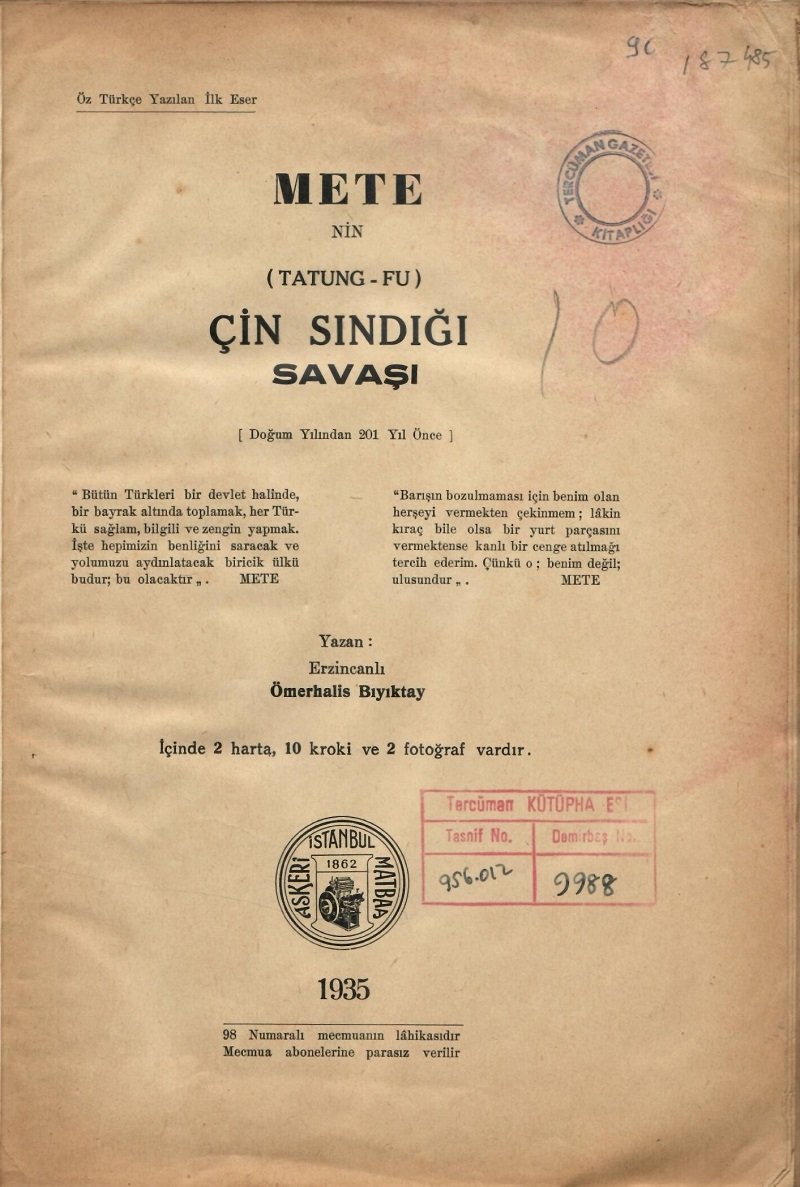 • METE NIN ( TATUNG-FU) ÇİN SINDIĞI SAVAŞİ