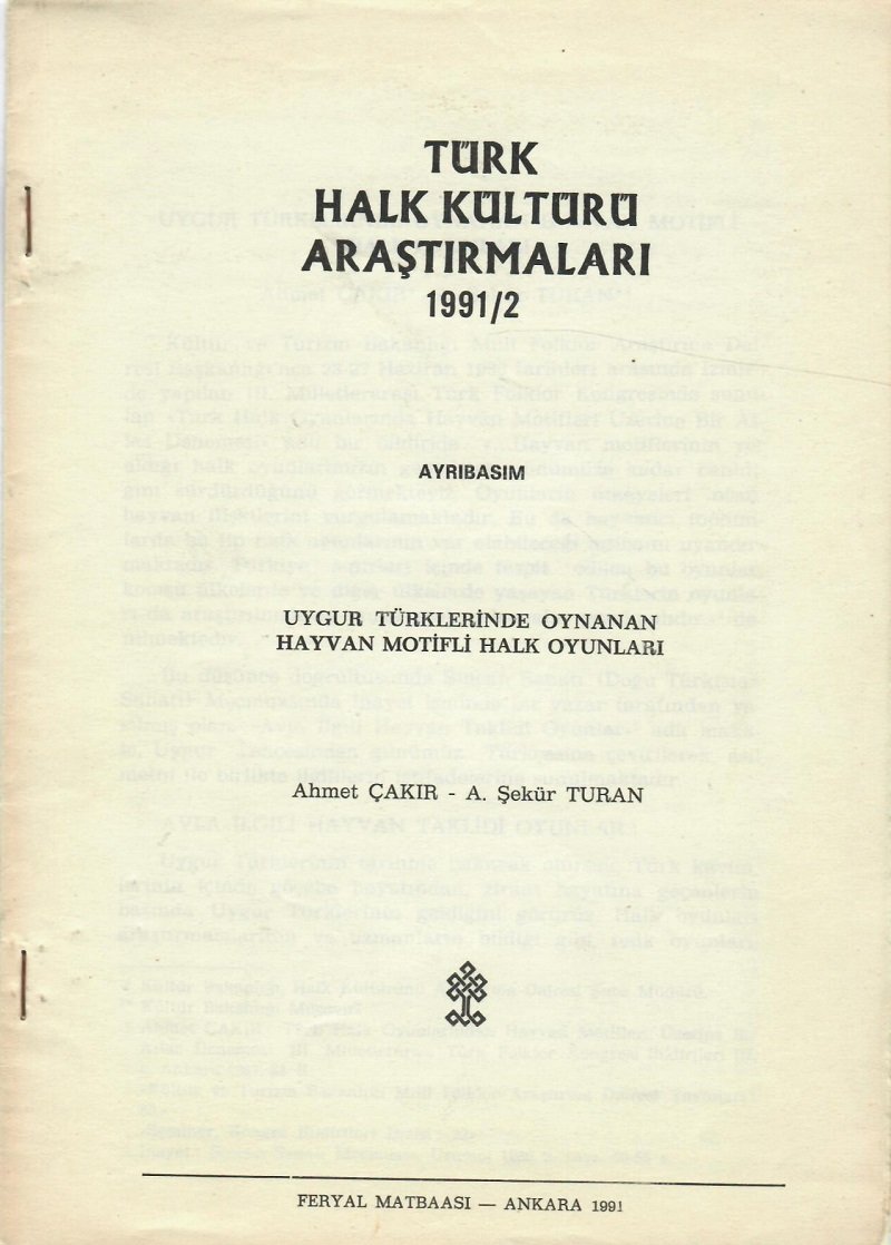 • TÜRK HALK KÜLTÜRÜ ARAŞTIRMALARI