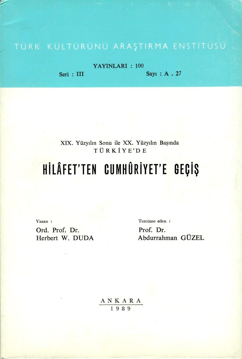 XIX. Yüzyılın Sonu İle xx. Yüzyılın Başında TÜRKİYE'DE HİLAFET'TEN CUMHÜRİYET'E GEÇİŞ